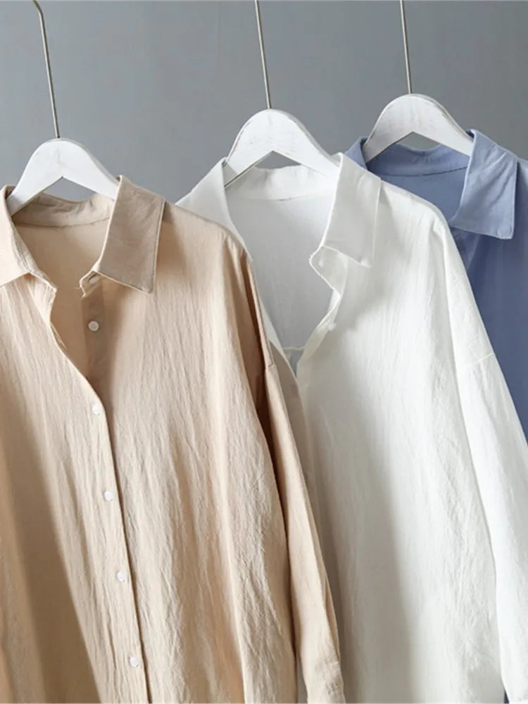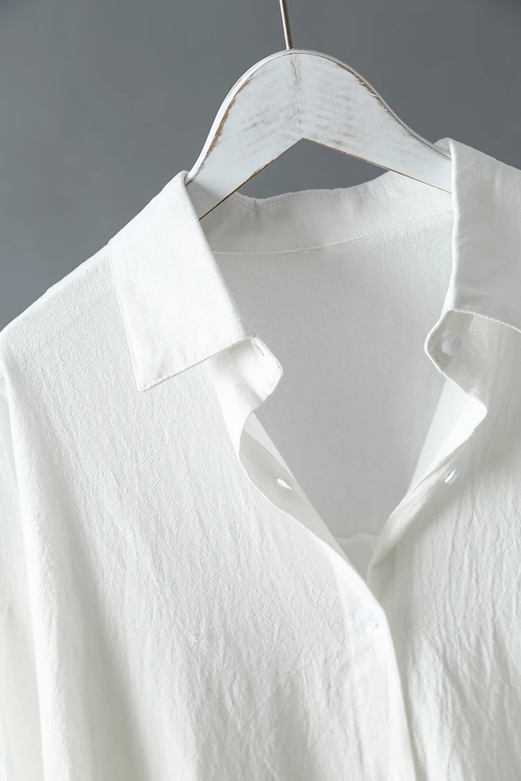 Women Loose Cotton Linen Cardigan Long Shirts Casual Blouses Female Fashion Elegant Outerwear Monochromatic Tee Clothes Summer