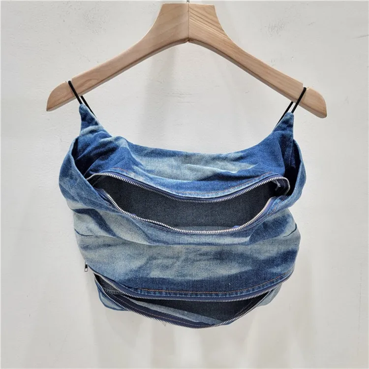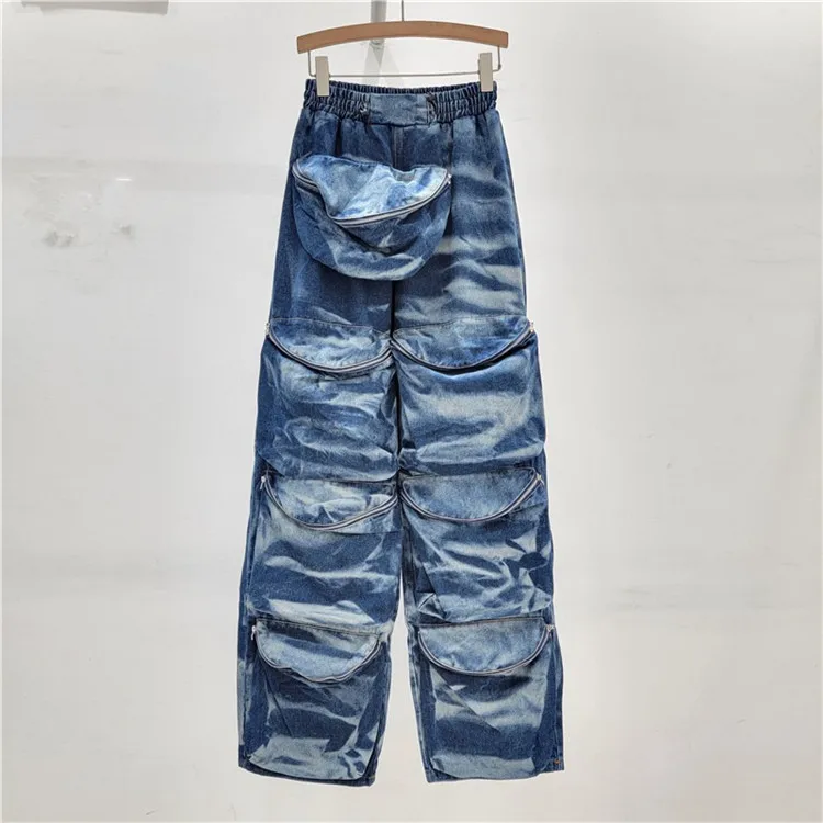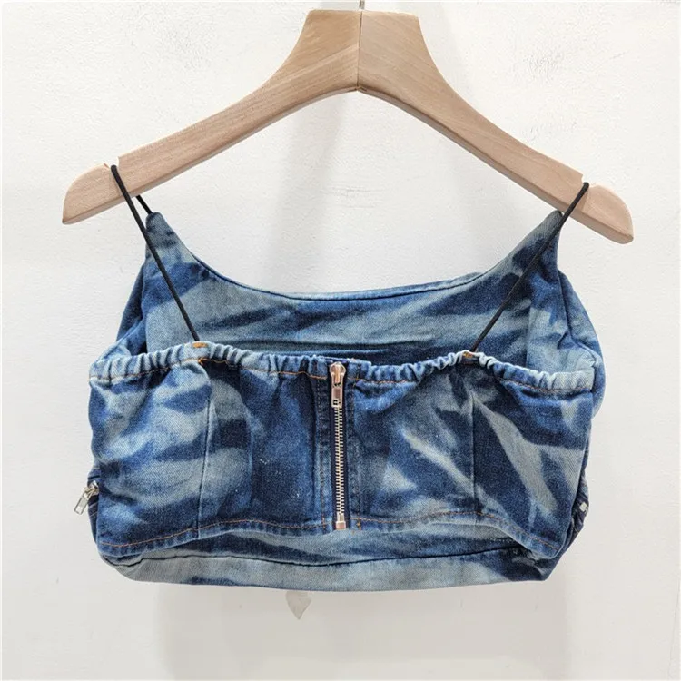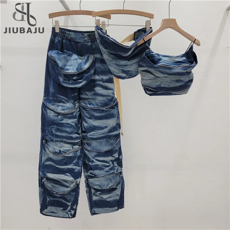 Women Pant Sets 2024 Summer Sleeveless Short Blue Denim Crop Top High Waist Loose Straight Jean Two Pieces Sets