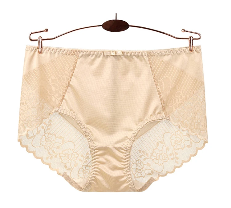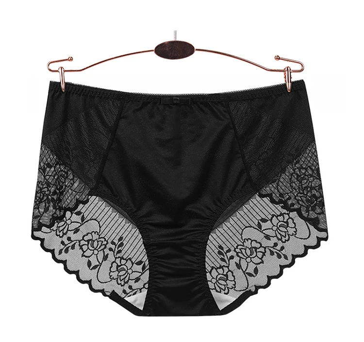 Women Satin Transparent Floral Lace Panties High Elastic female Traceless mid waist with Lace panty