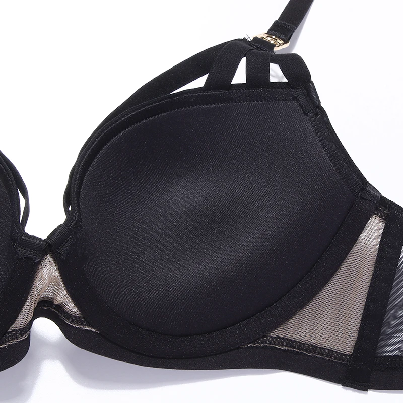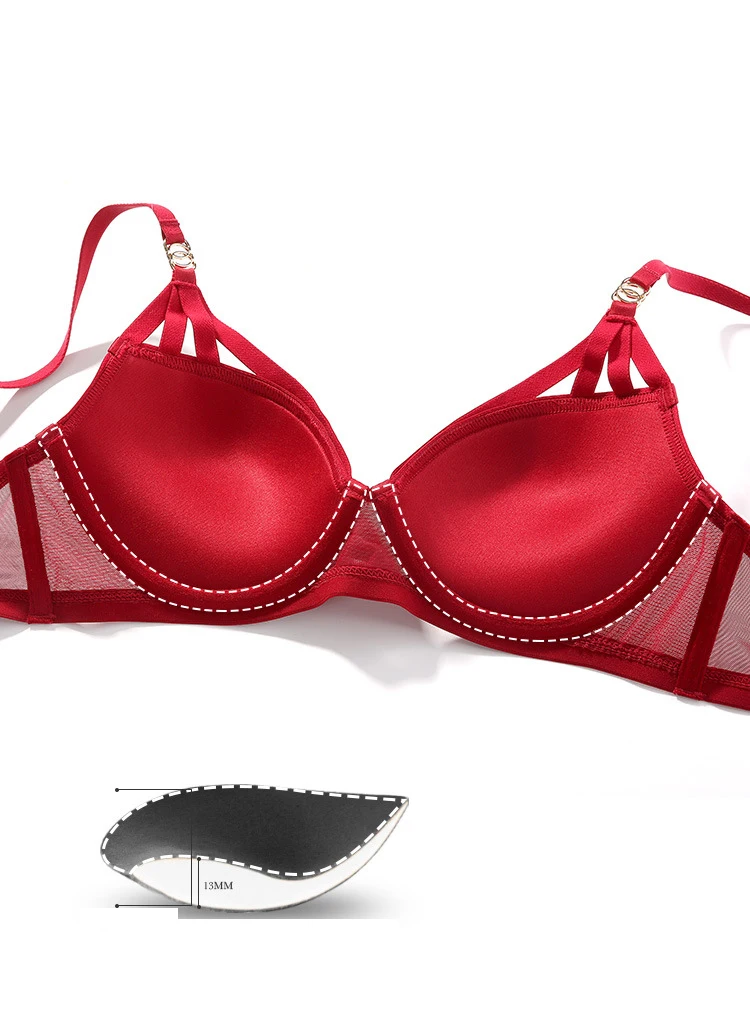 New Strappy Lingerie Female Two-piece Top Padded Bra Panties Set Solid Push Up Underwire Metal Decor Underwear For Women