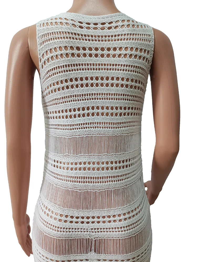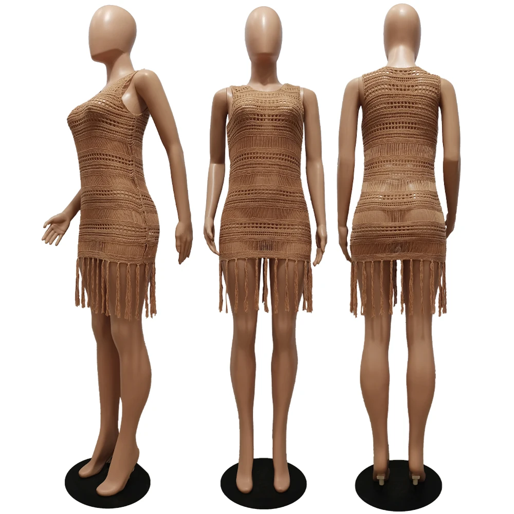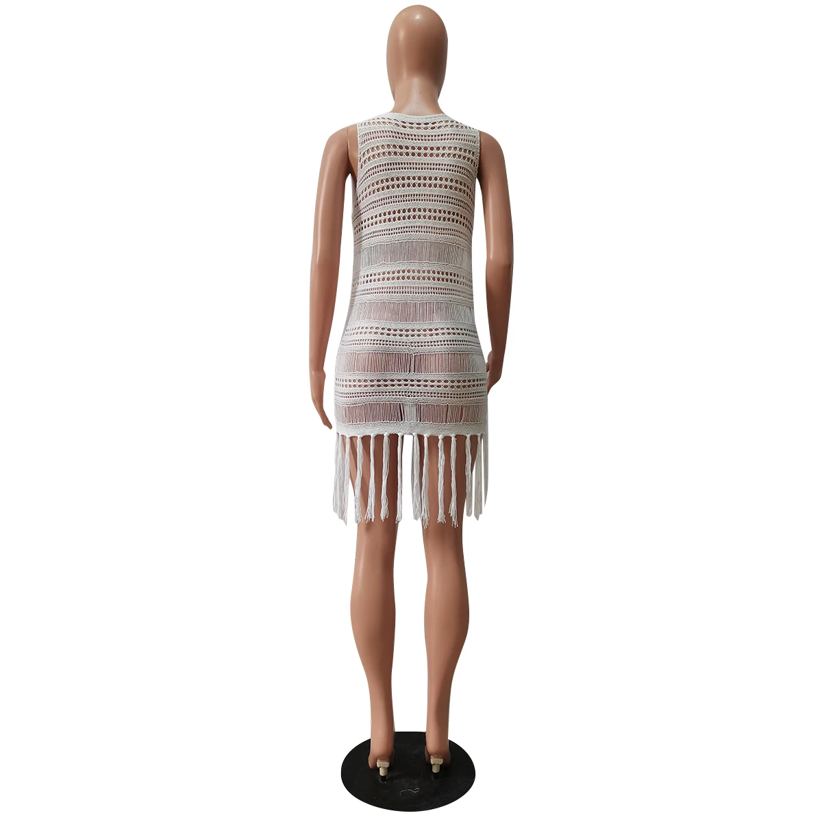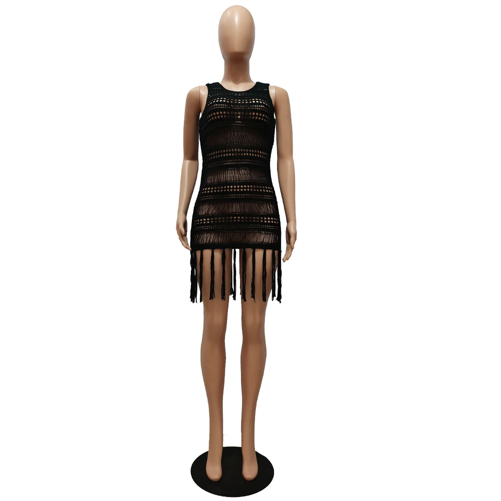 Women Summer 2022 Knit Outer Beach Dress Tassel Crochet Party Tassel Beach Dress Mesh Knit Coverups Dress