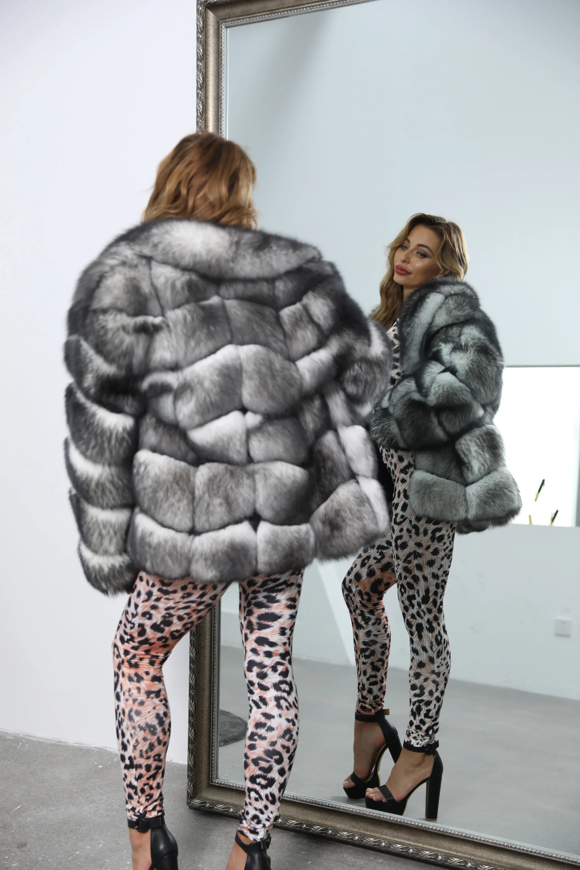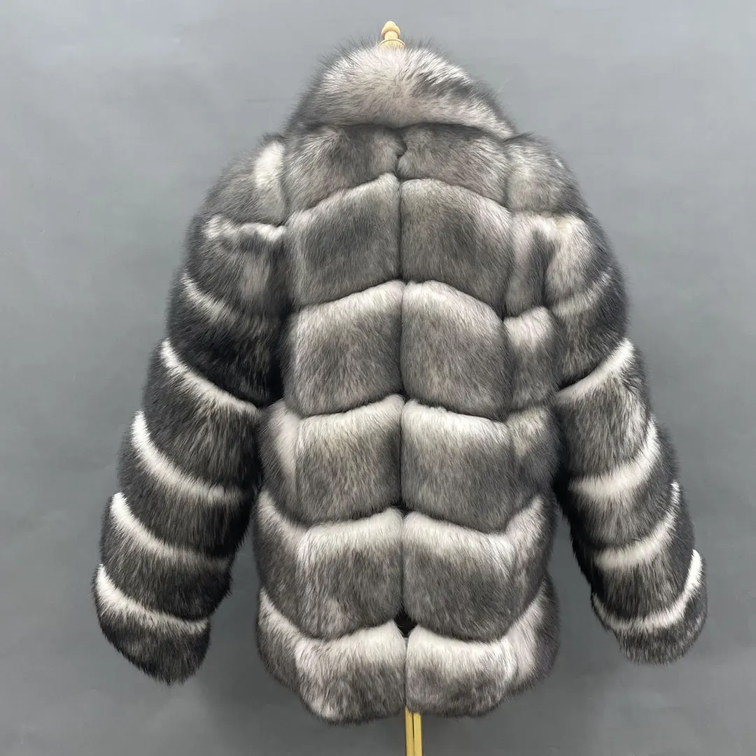 Women Winter Warm Short Coat Fluffy Real Fox Fur Fashion Style Beautiful White Fox Fur Coat