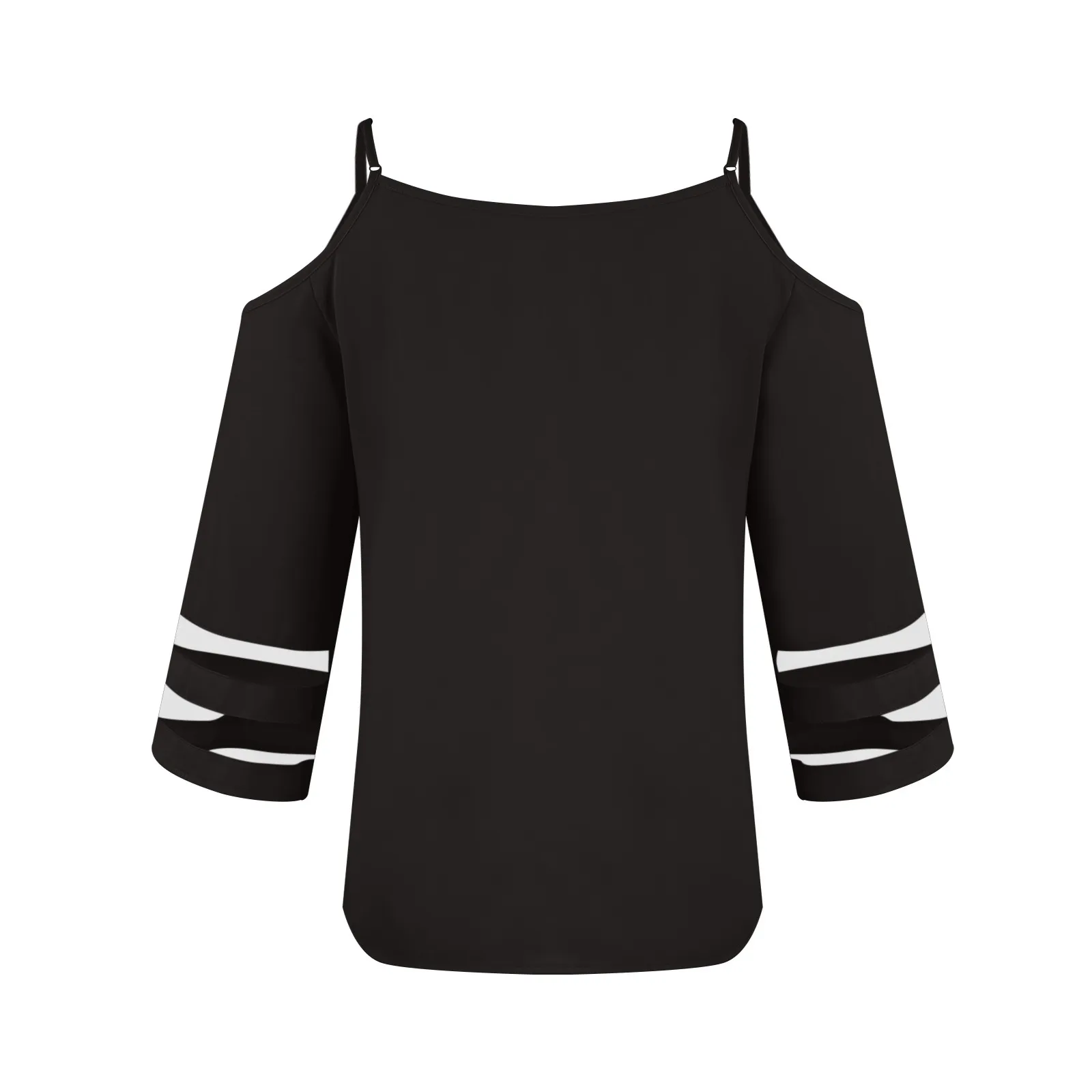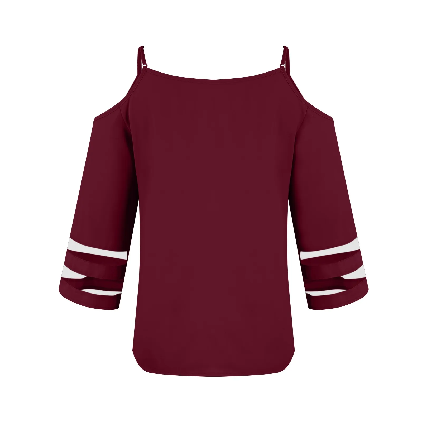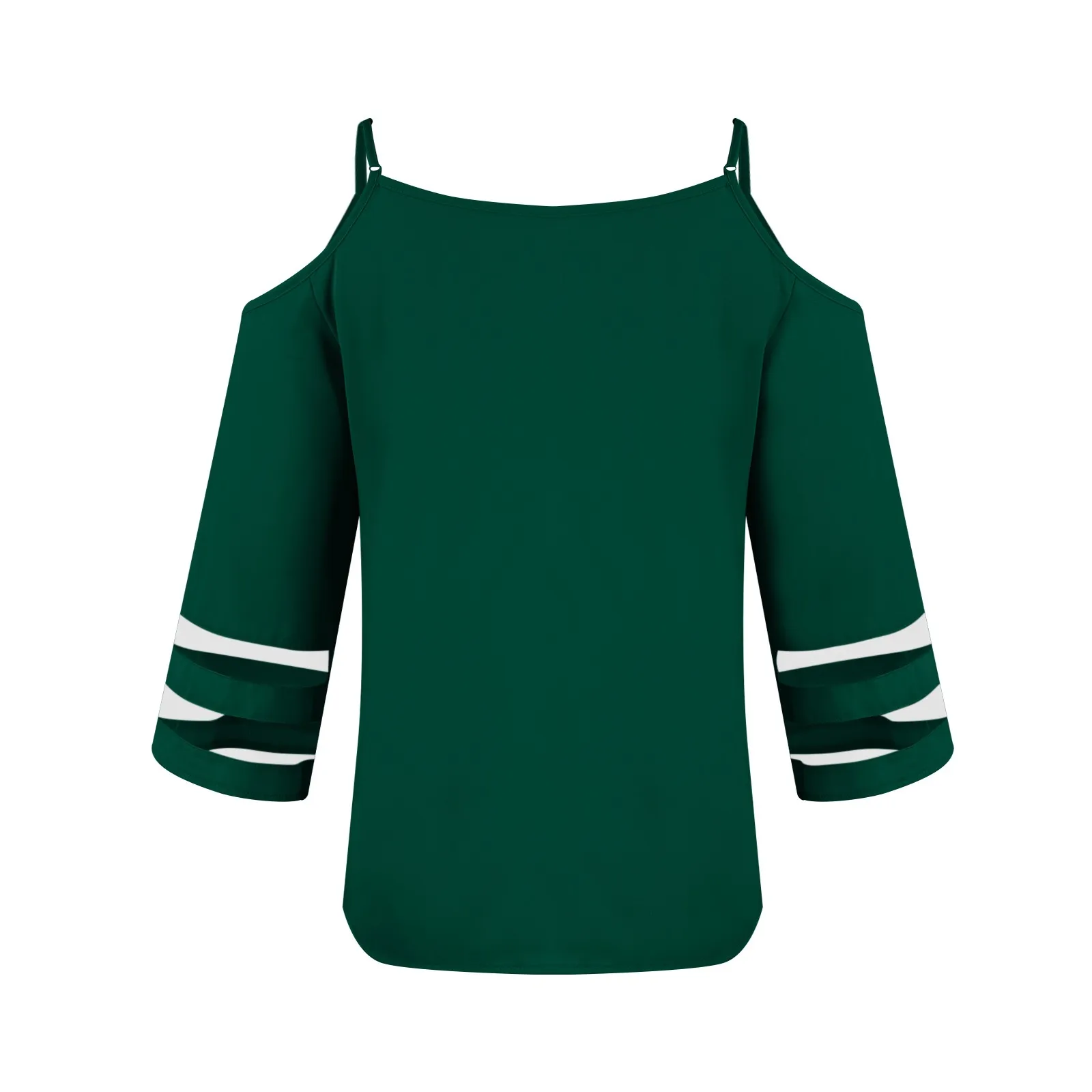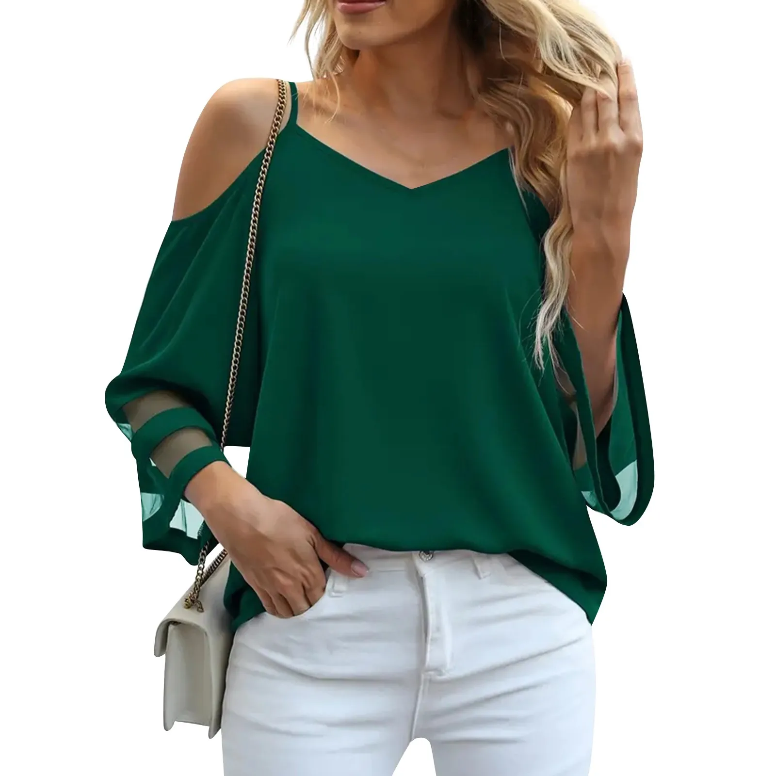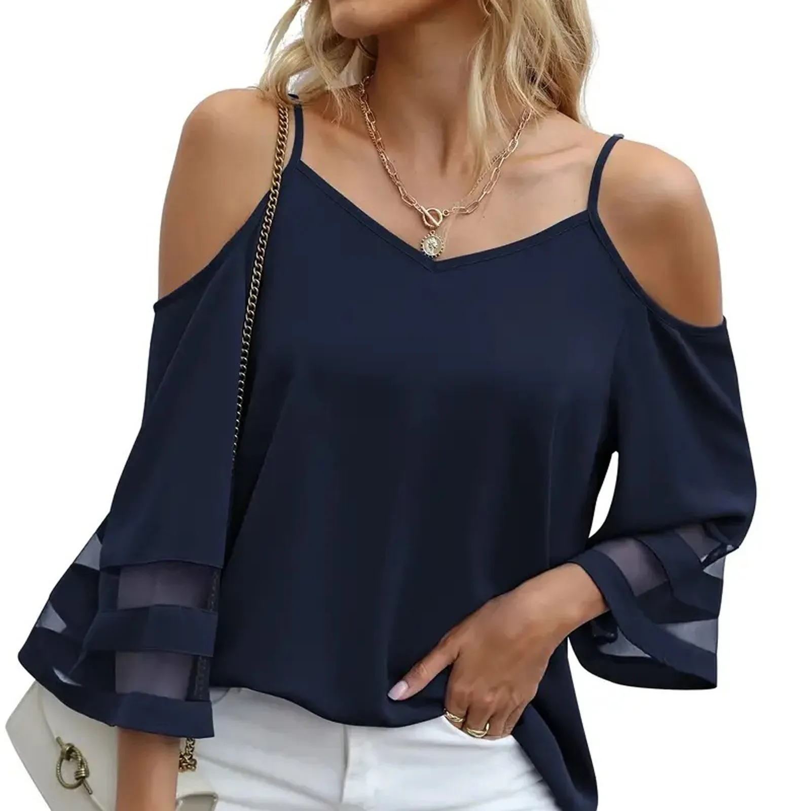 Women's Fashion Loose V-Neck Solid Color 3/4 Sleeve Casual Shoulder Strap Top