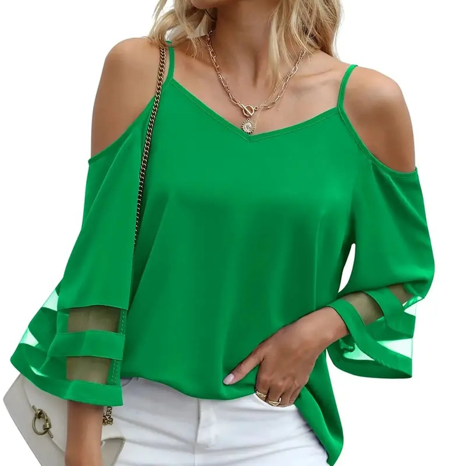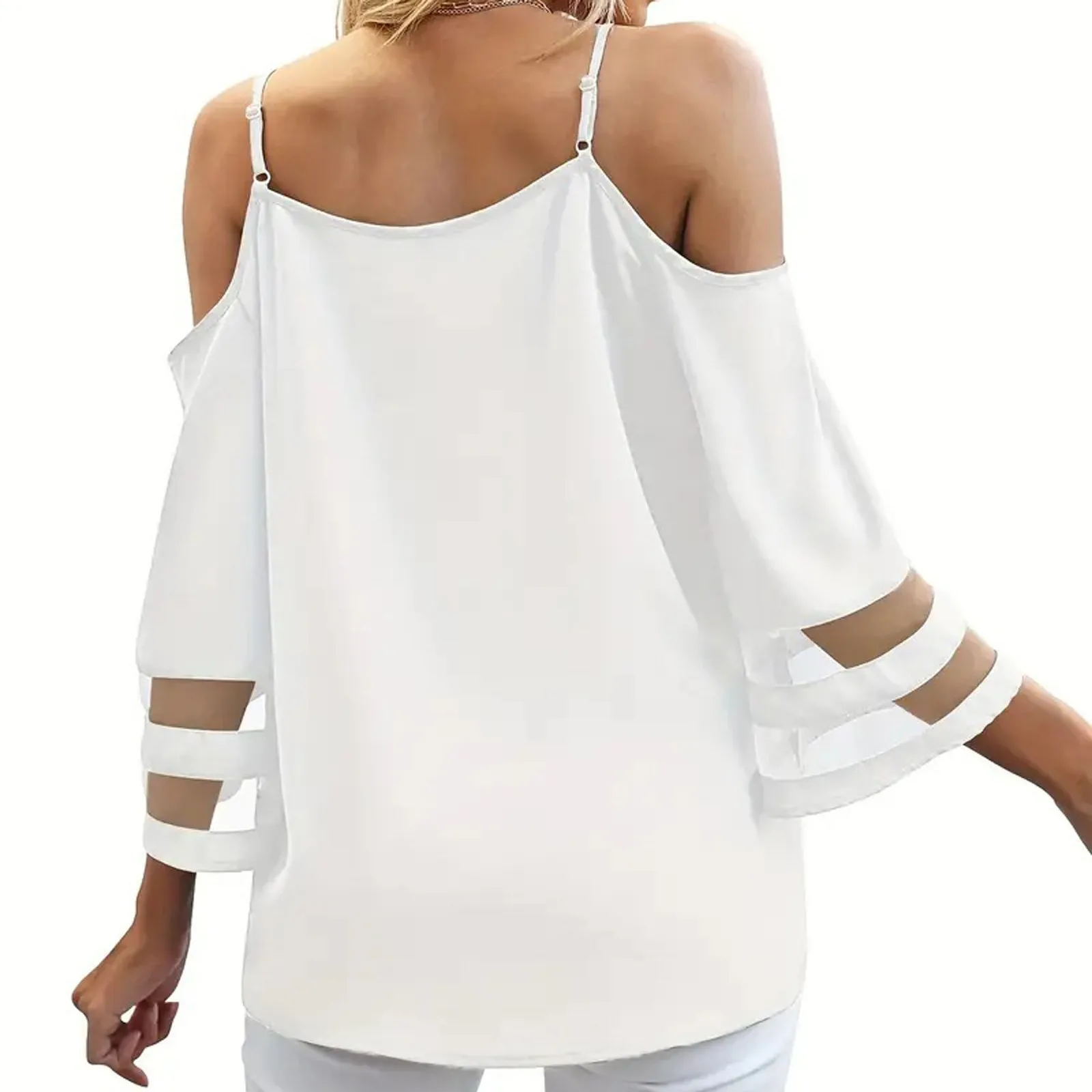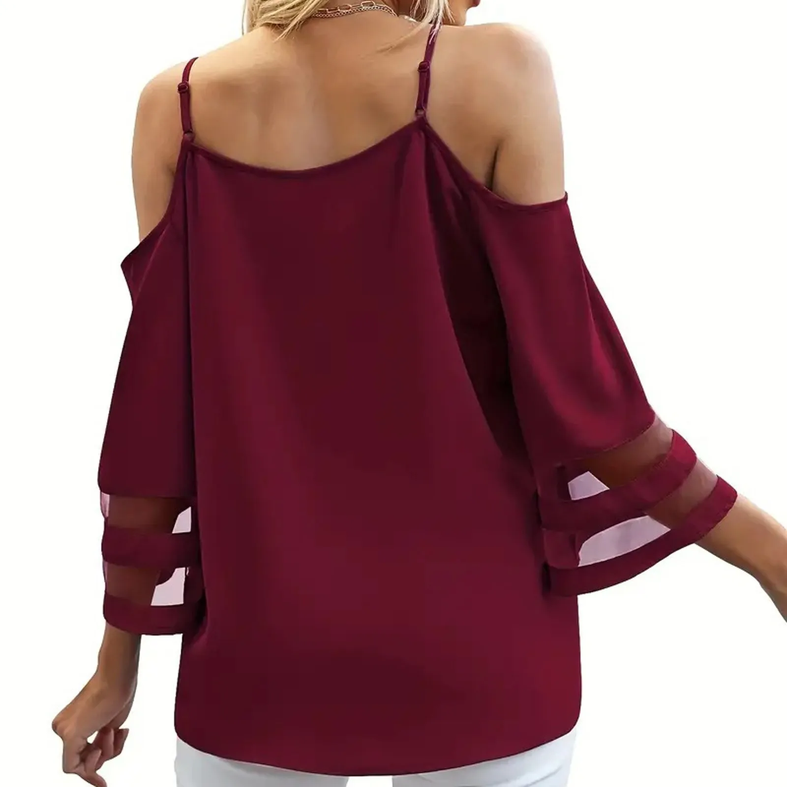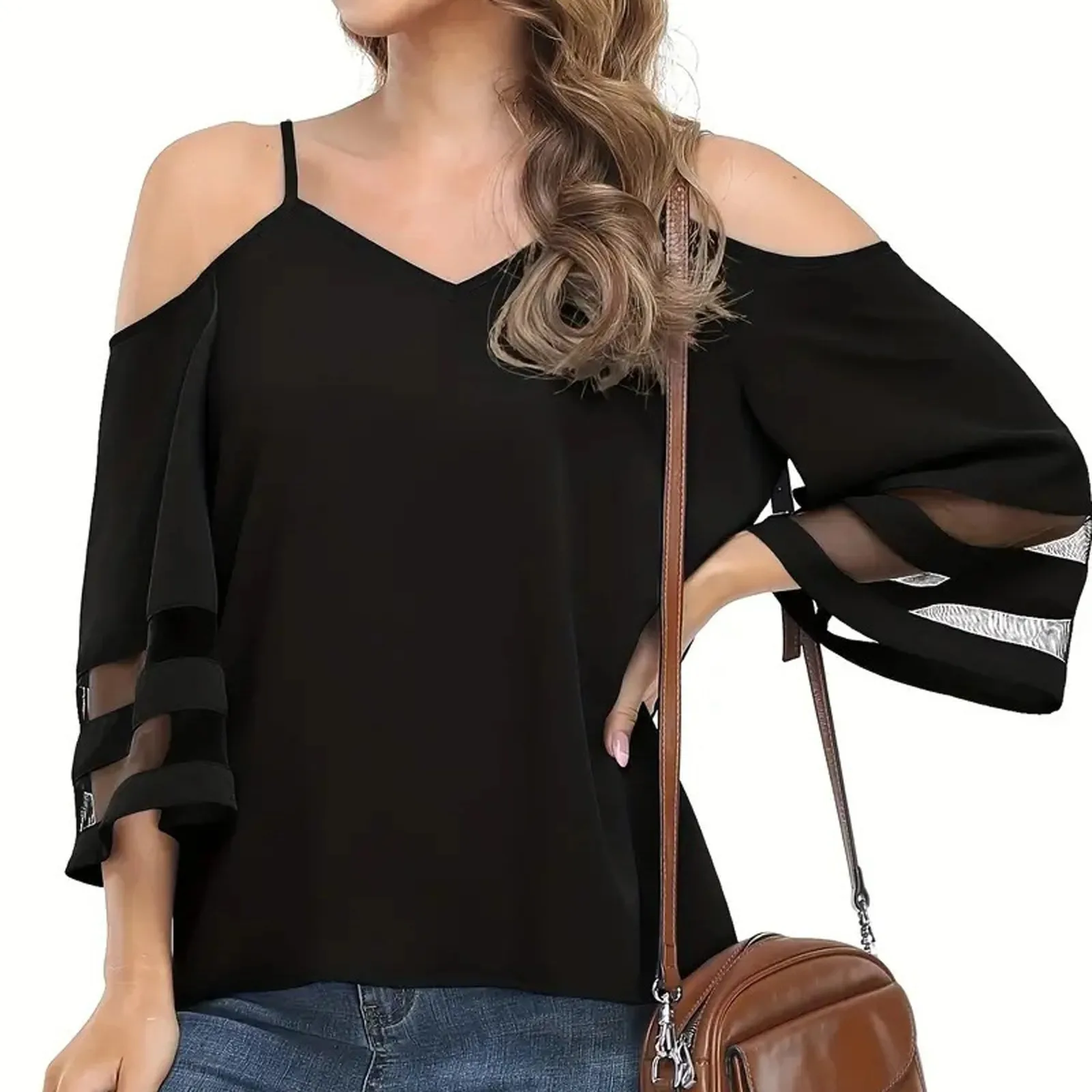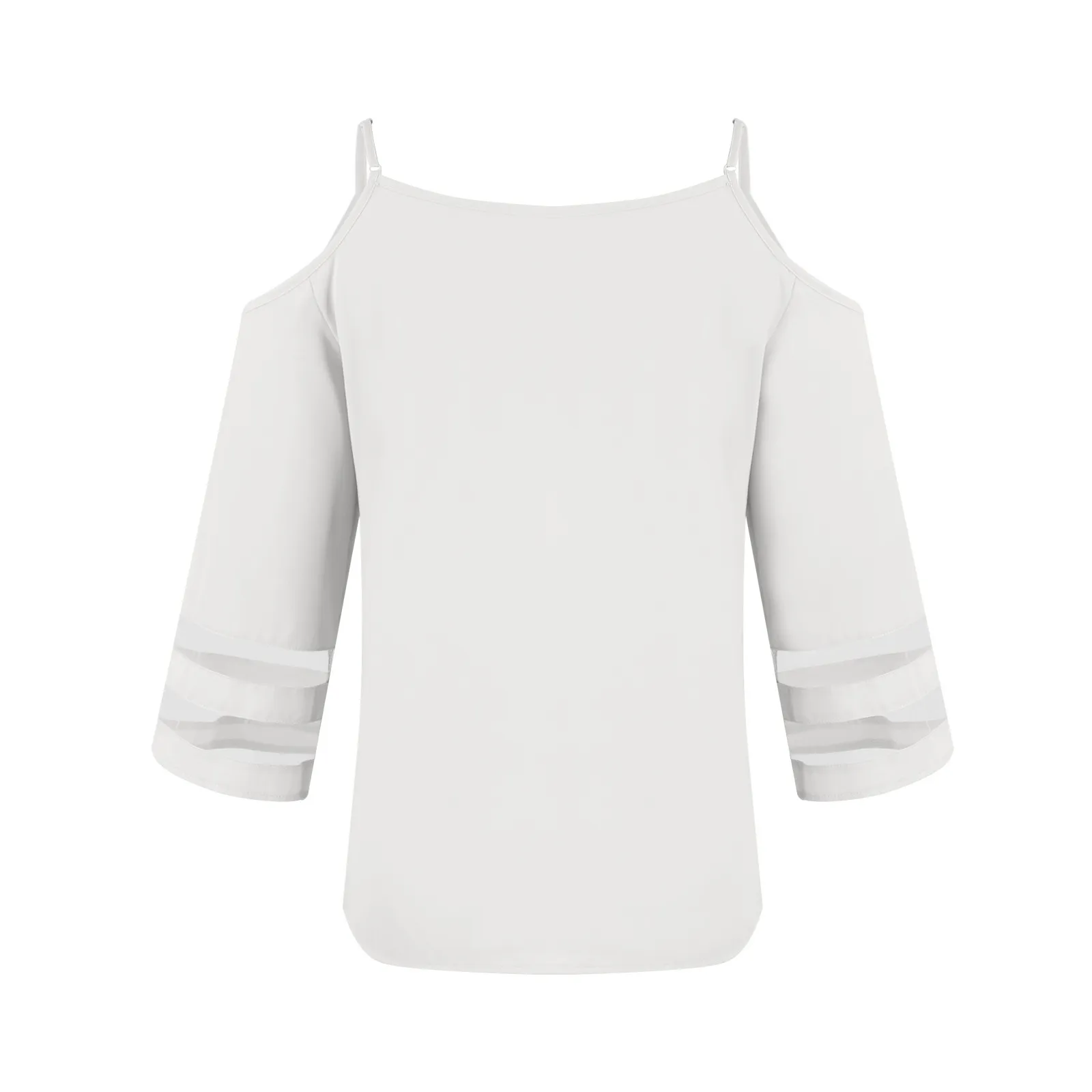 Women's Fashion Loose V-Neck Solid Color 3/4 Sleeve Casual Shoulder Strap Top