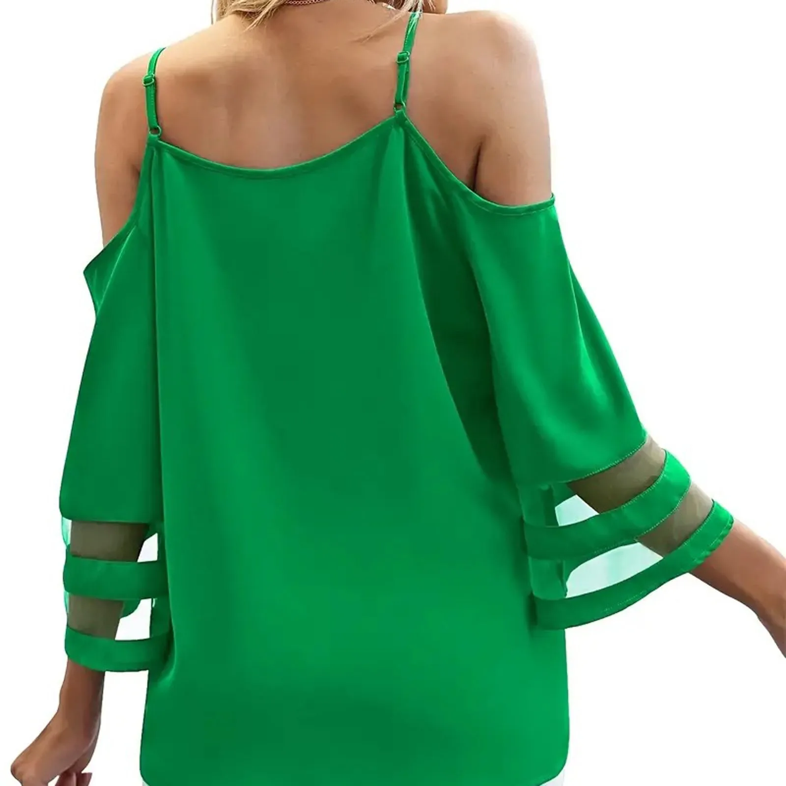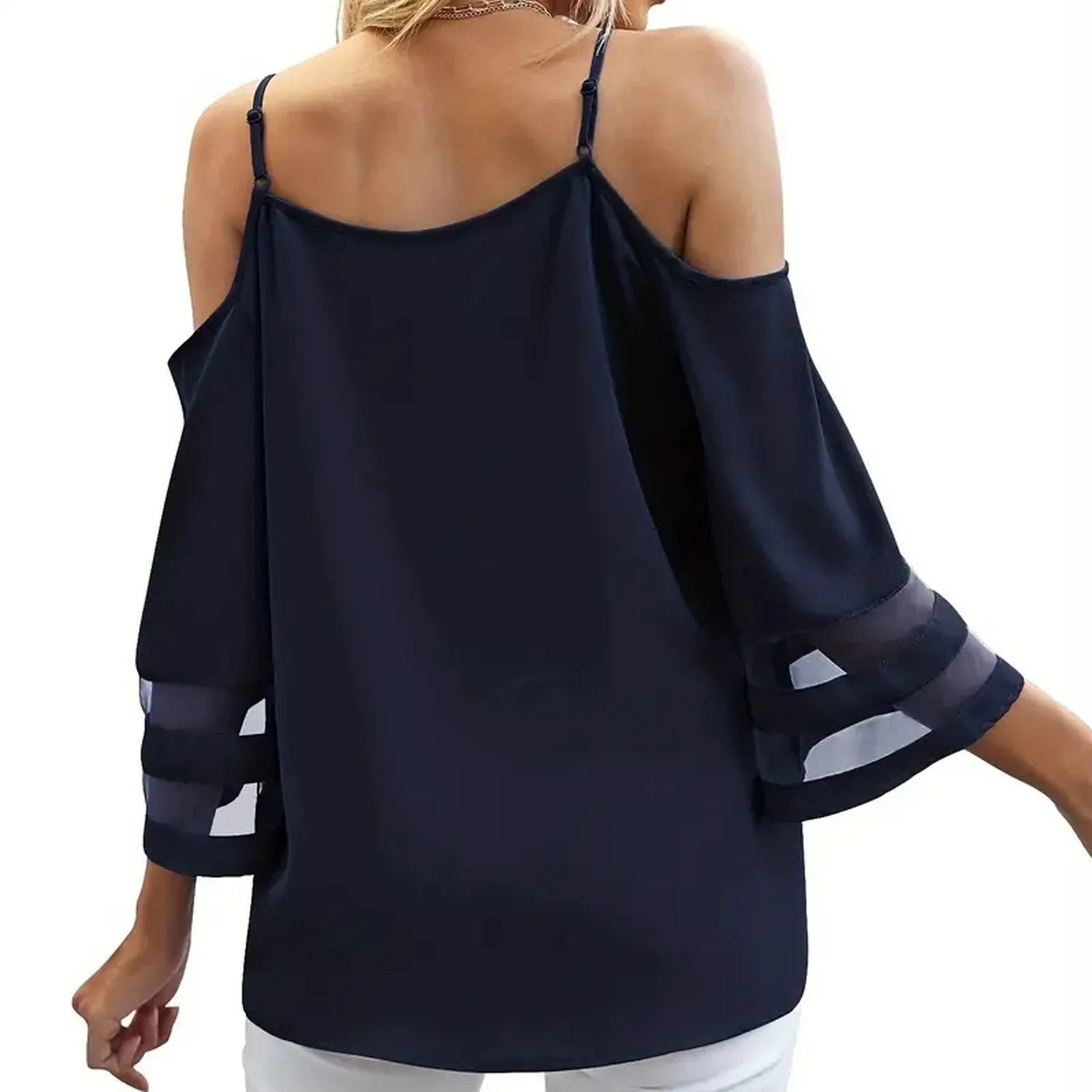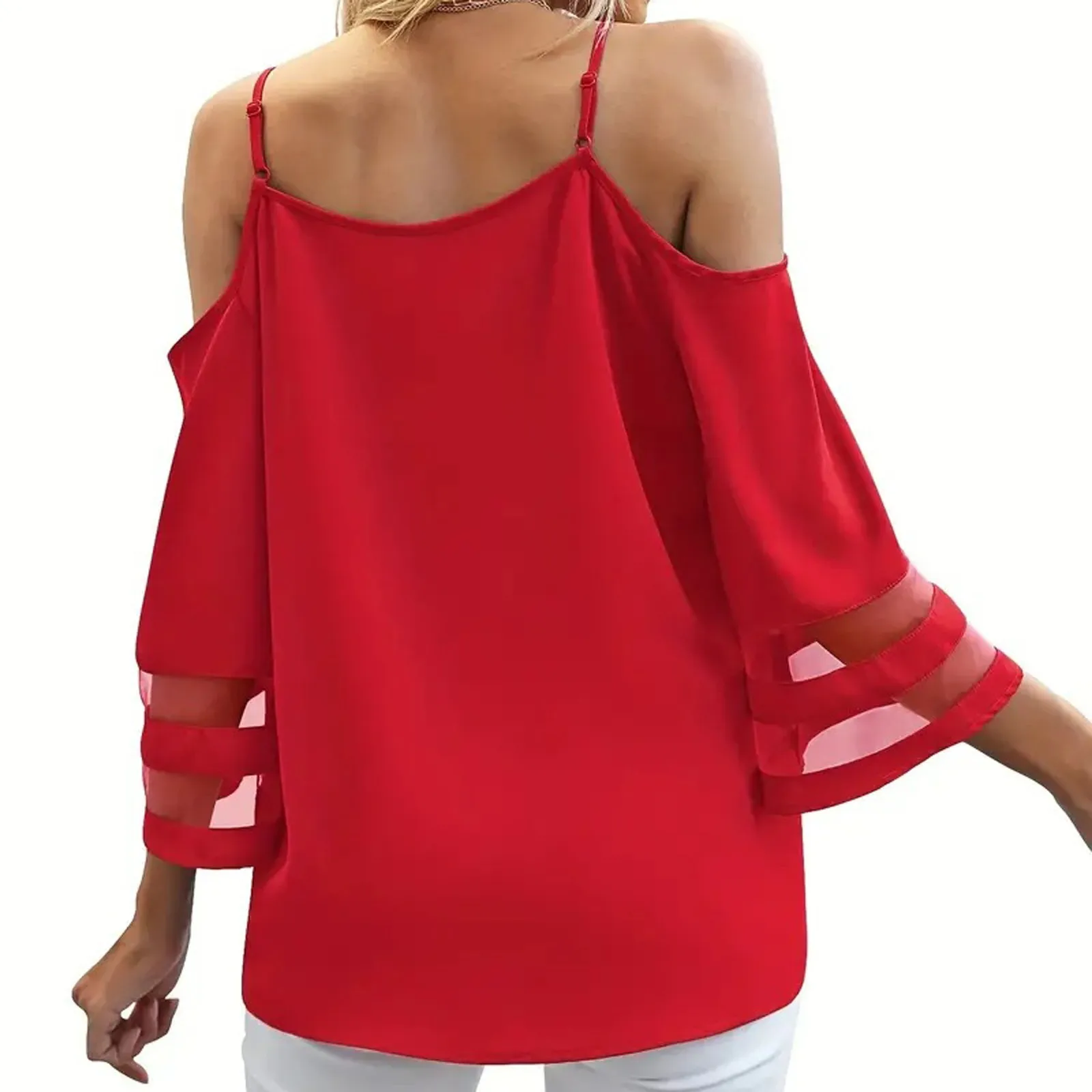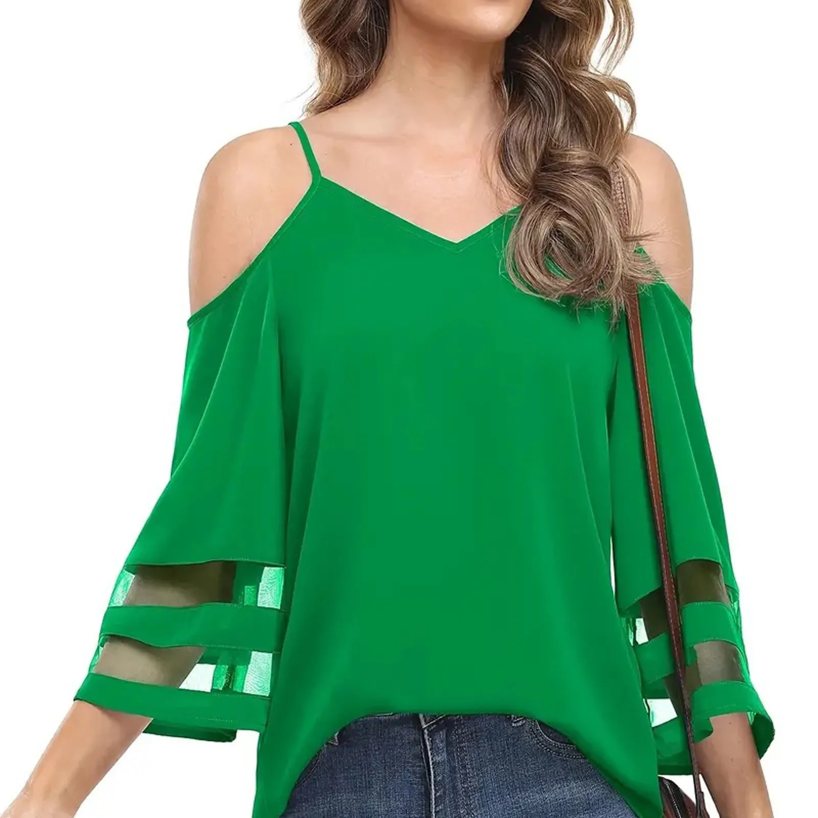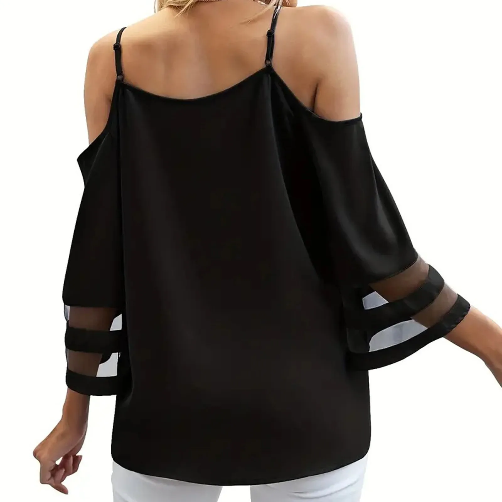 Women's Fashion Loose V-Neck Solid Color 3/4 Sleeve Casual Shoulder Strap Top