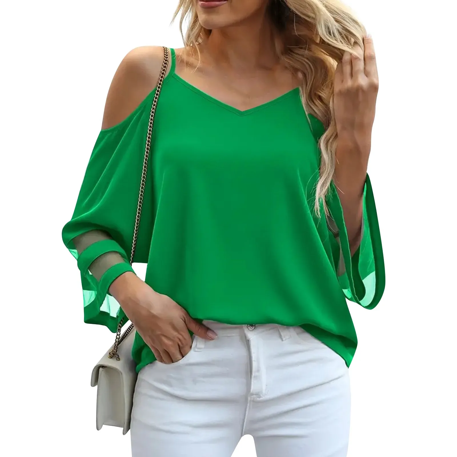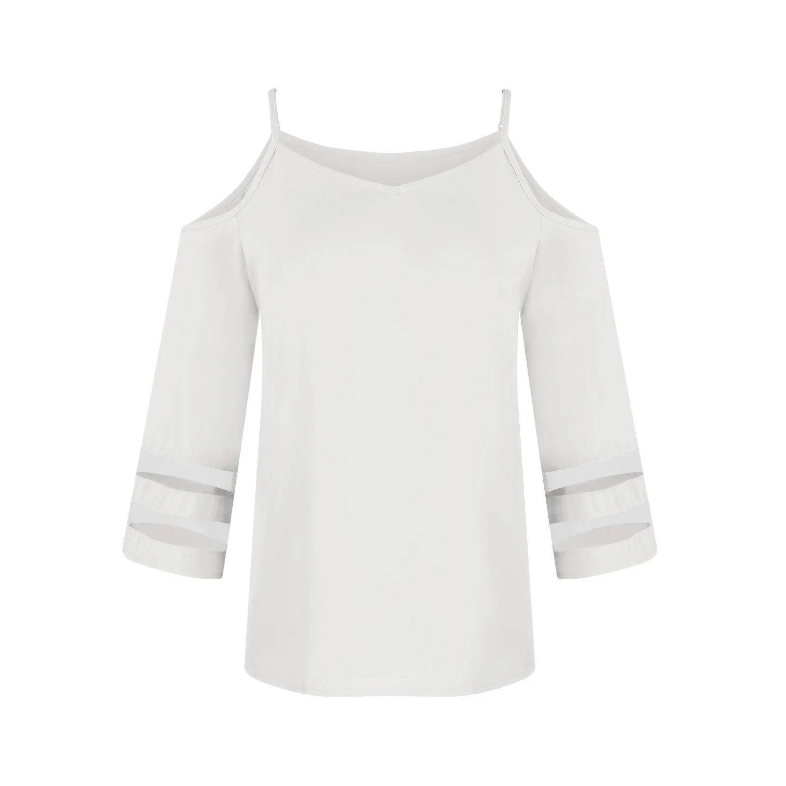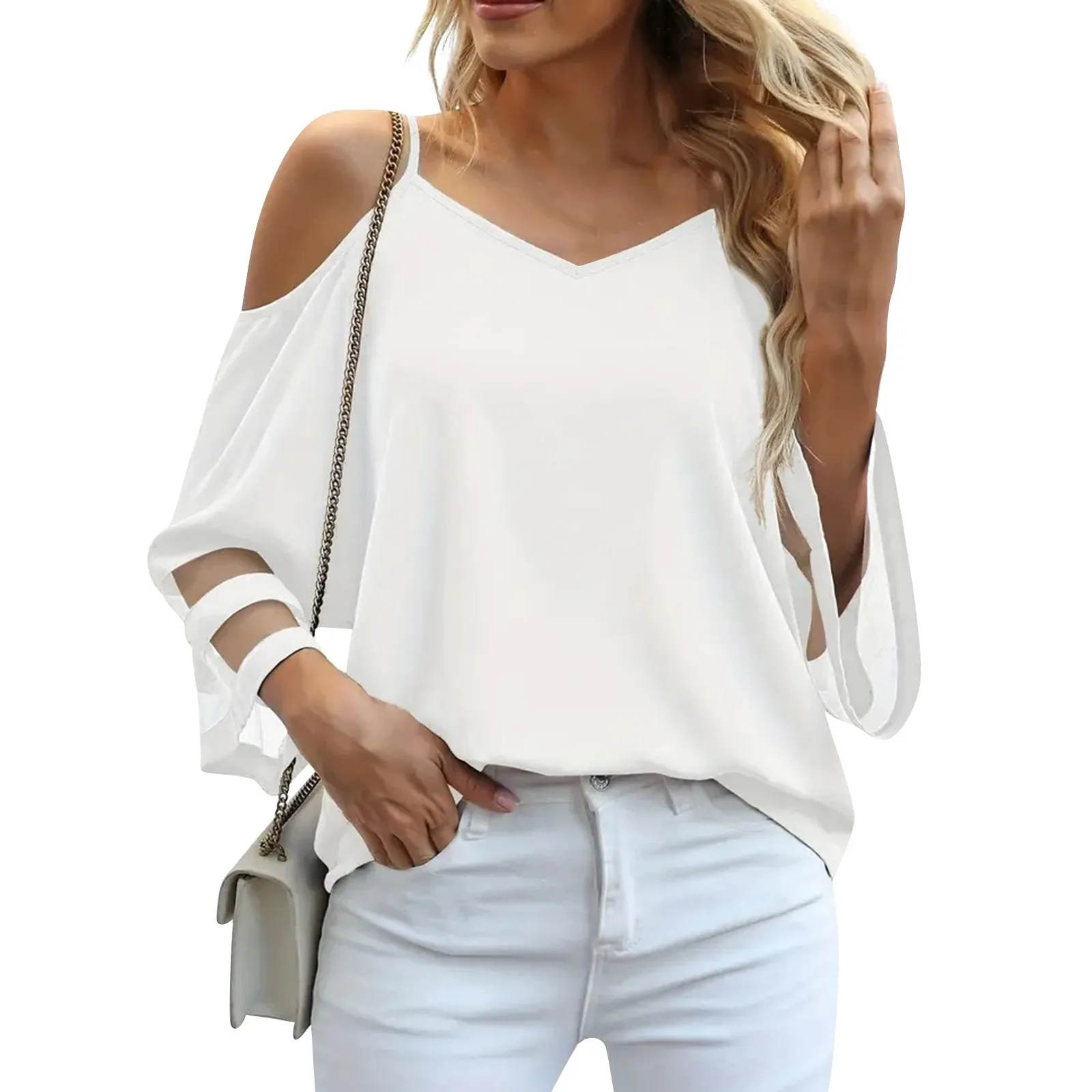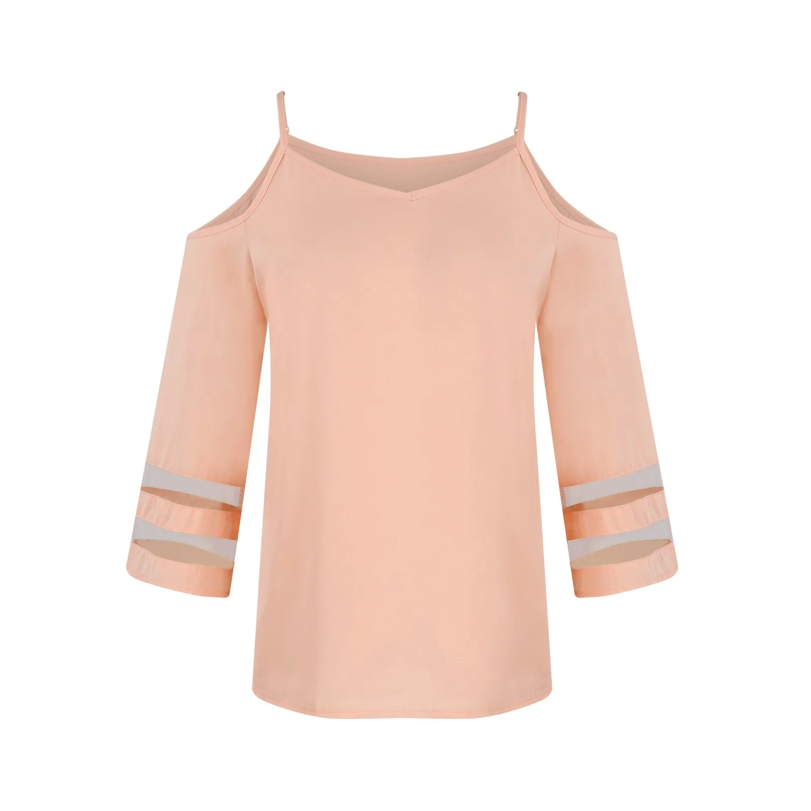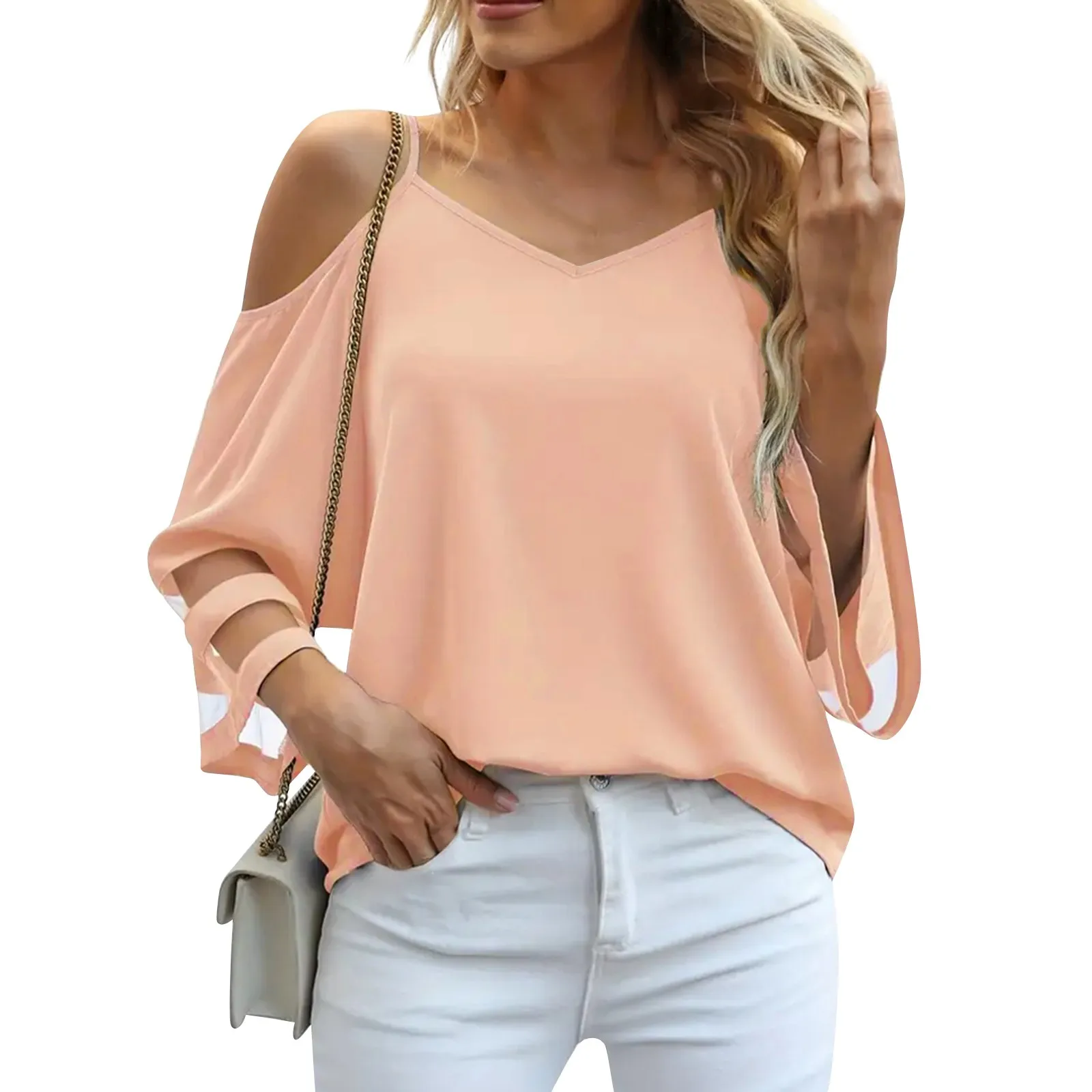 Women'S 3/4 Sleeve Tops Fashion Loose V-Neck Solid Color Casual Shoulder Strap Top Daily Commute Elegant All-Match Comfy Tops