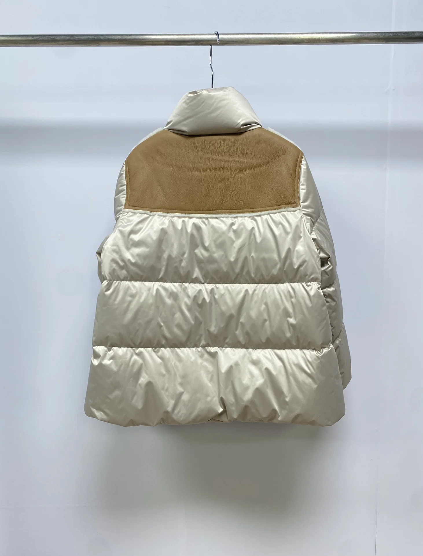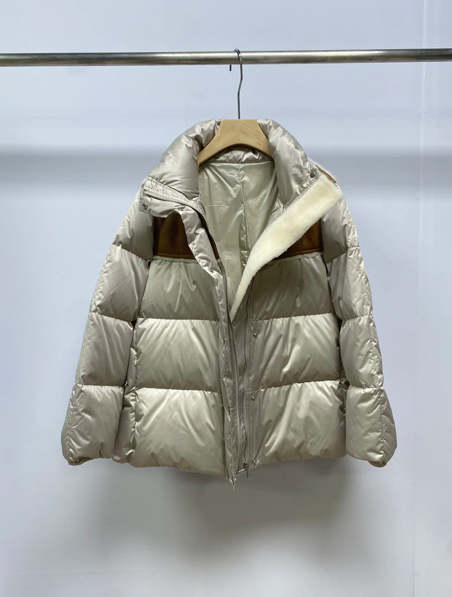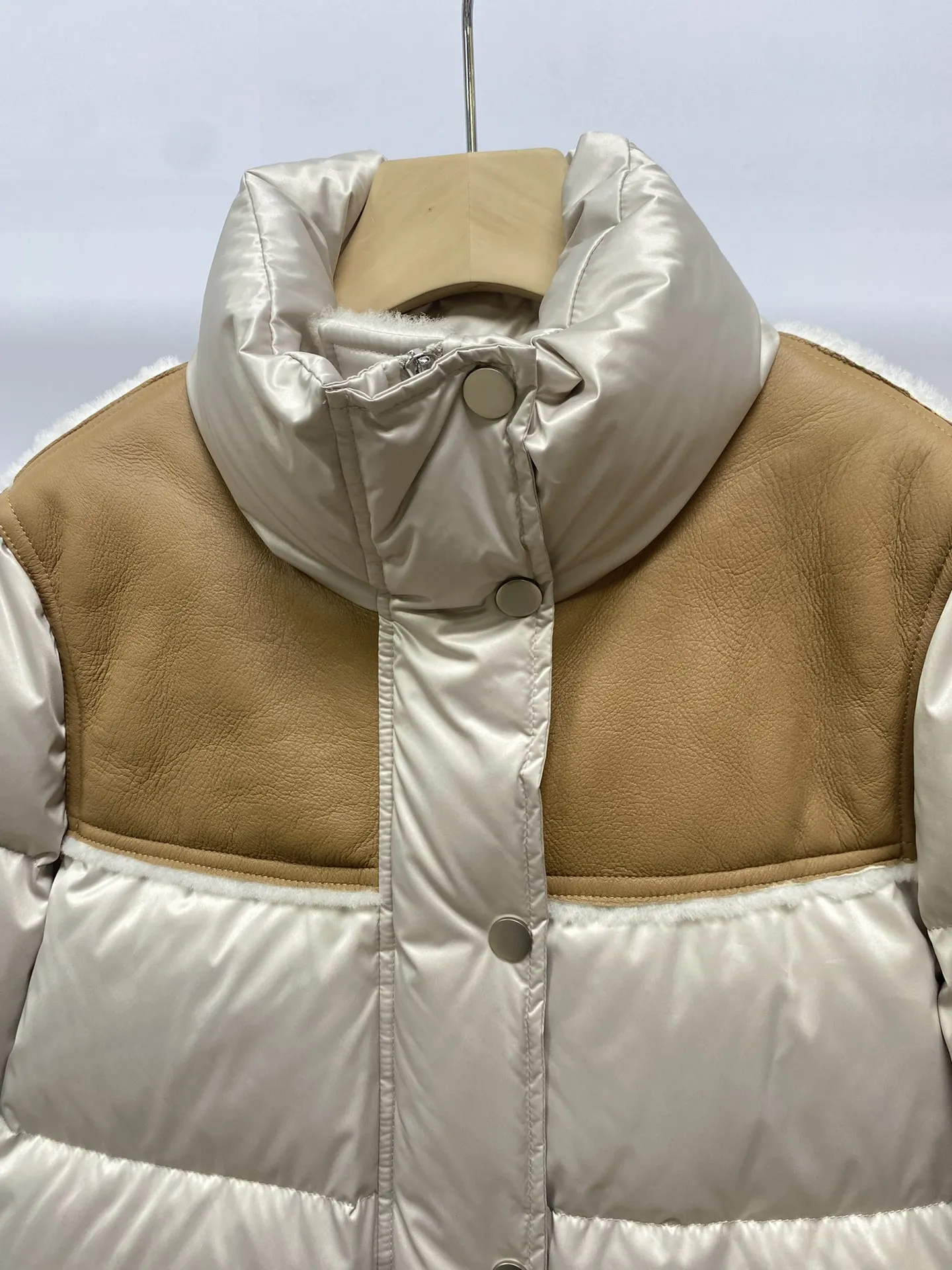 Women's Casual Sheepskin Wool Patchwork Goose Down Jacket, Female Clothing, High Collar, Luxury, Light, Fashion, B, C