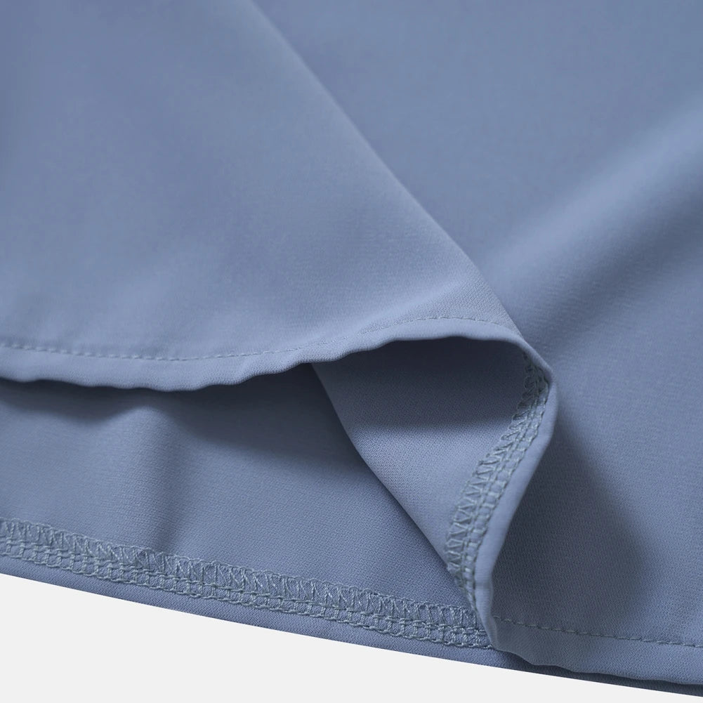 1. This loose solid color asymmetric collar chiffon shirt features seven-point flared sleeves and stylish mesh fabric to keep you cool and comfortable.