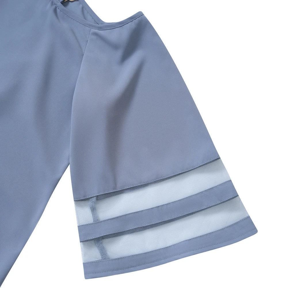 Women's Cold Shoulder Mesh Panel 3/4 Bell Sleeve Casual Top Blouse Shirt Summer Loose Fitting Chiffon Blous