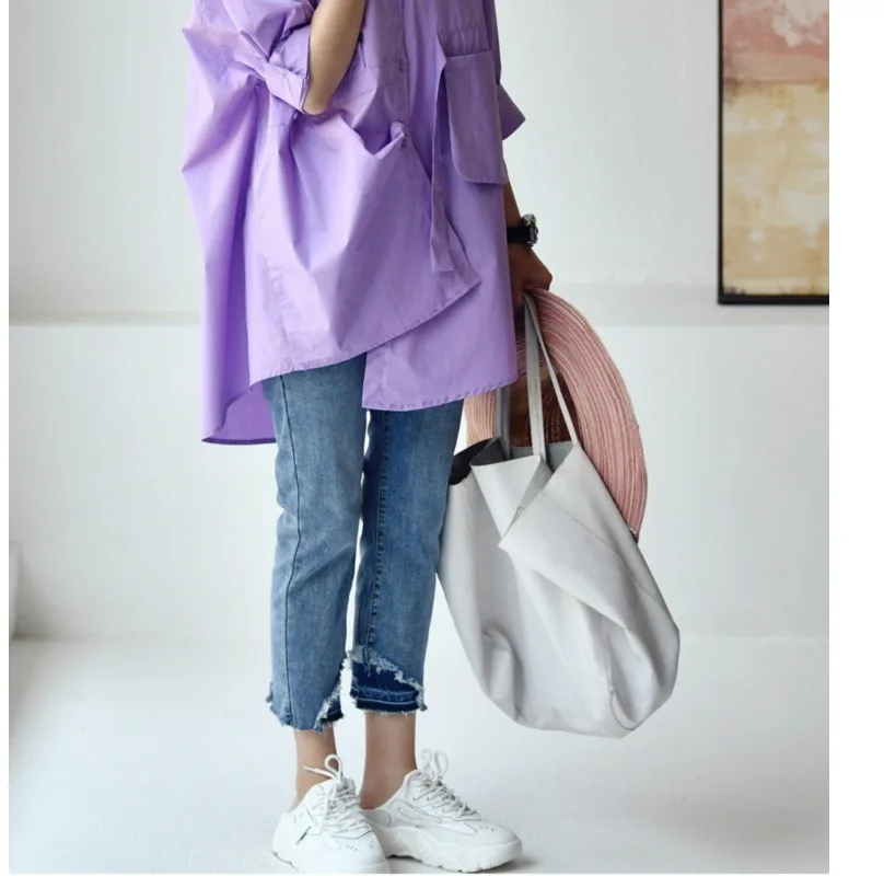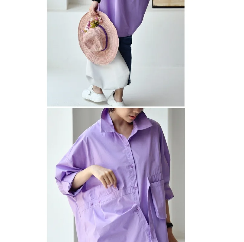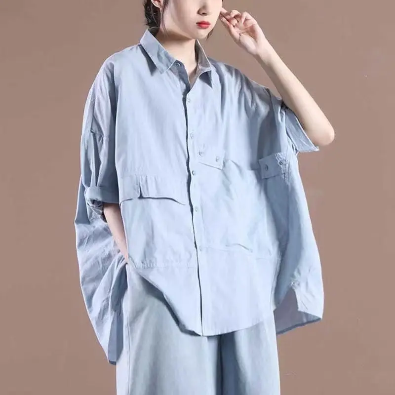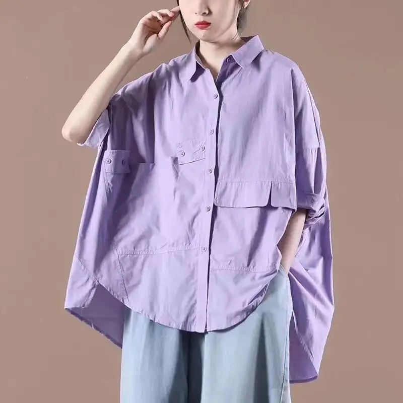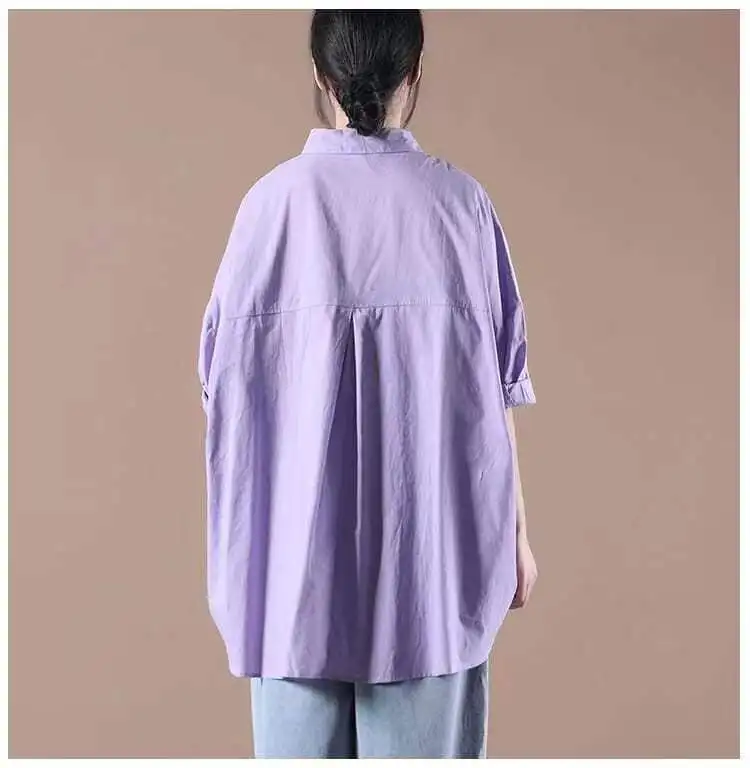 Women's Irregular Cotton Lapel Five-Point Sleeve Blouse, Large Size Shirt, Elegant Blouses for Youth, Medium Length