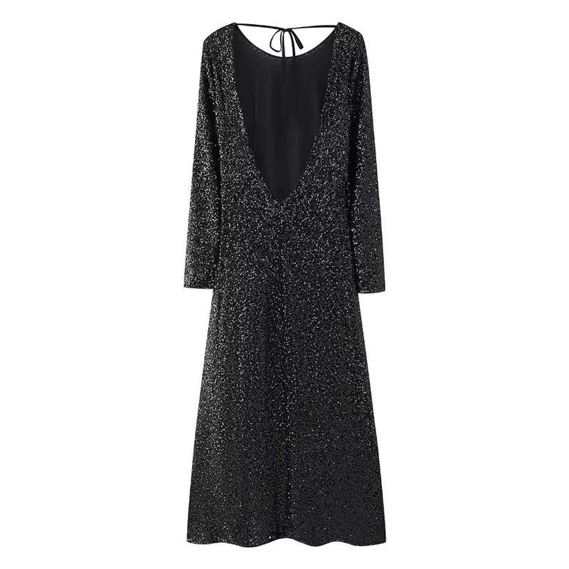 Women's Long Dress Autumn Sequined Vintage Fashion Backless Long Sleeve Female Party Evening Elegant and Pretty Women's Dresses