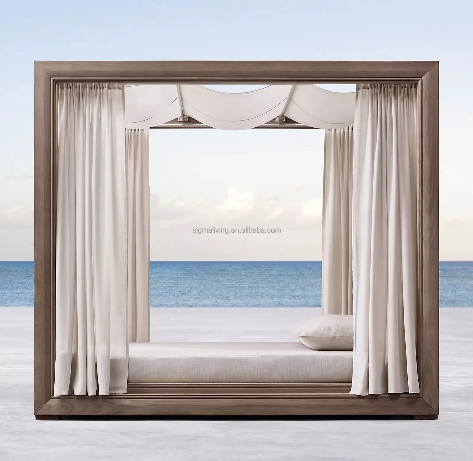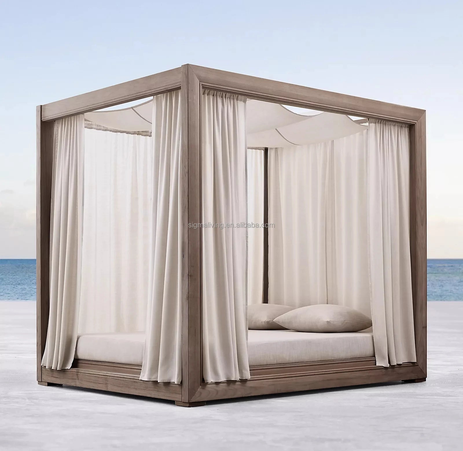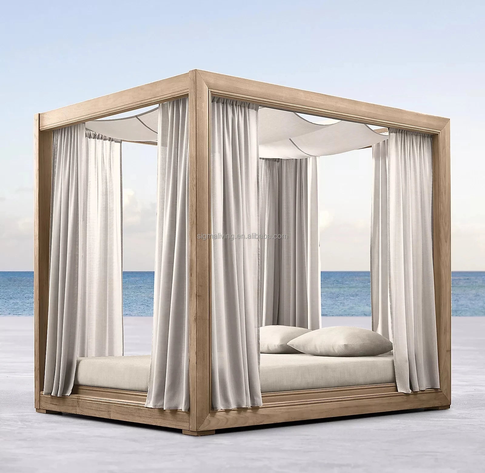 Wooden chaise outdoor teak garden set daybed furniture teak canopy daybed
