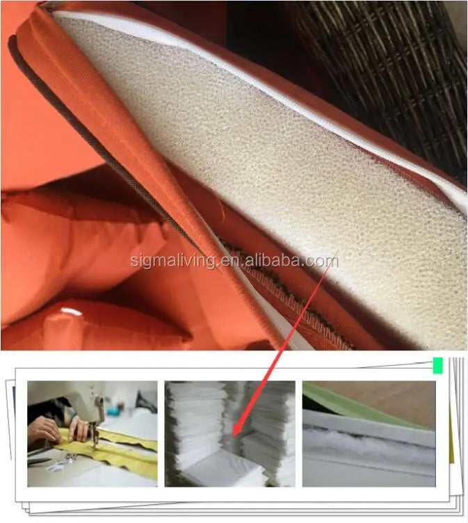 1) Cushion: High density foam, with removable cushion covers for easy cleaning, resistant against UV rays, and anything else the weather could throw at them;