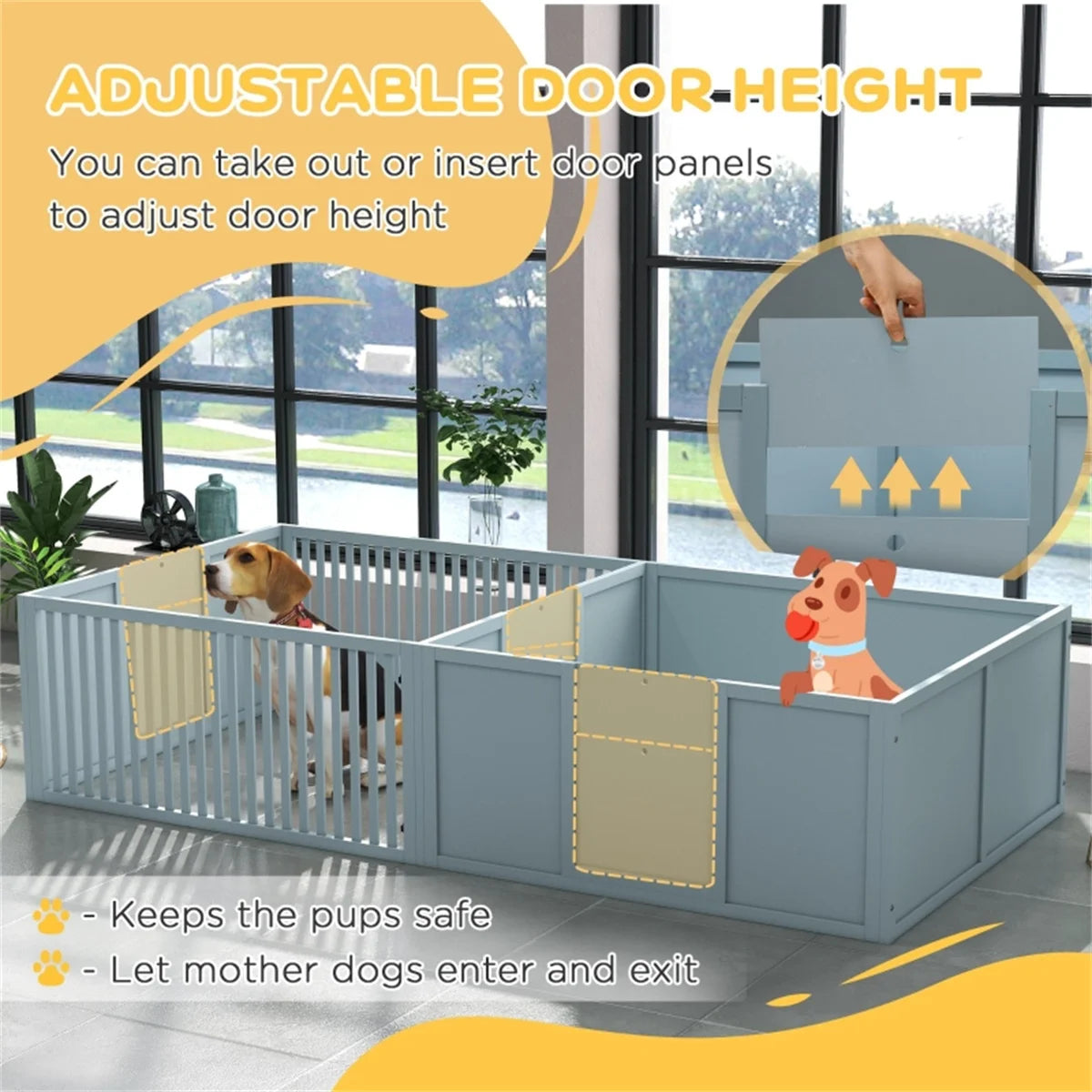 Wooden Freestanding Foldable Pet Gate for Dogs Whelping Box, Dog Gate for The House, Doorway, Stairs, Extra Wide Pet Playpen