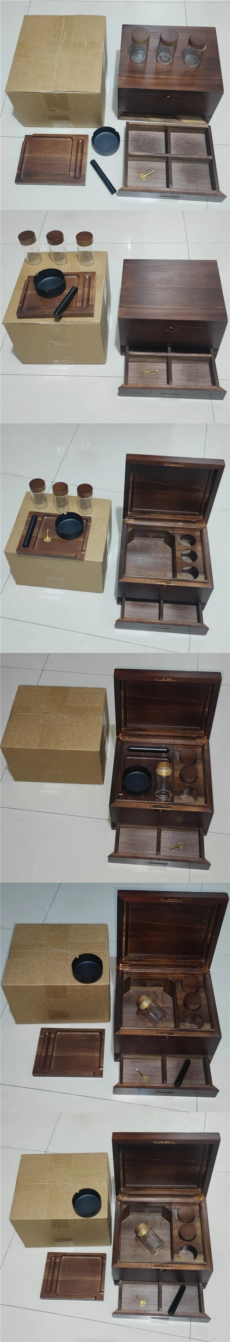wooden smell proof stash storage boxes custom high quality wood smoking accessories stash box kit luxury with lock rolling tray