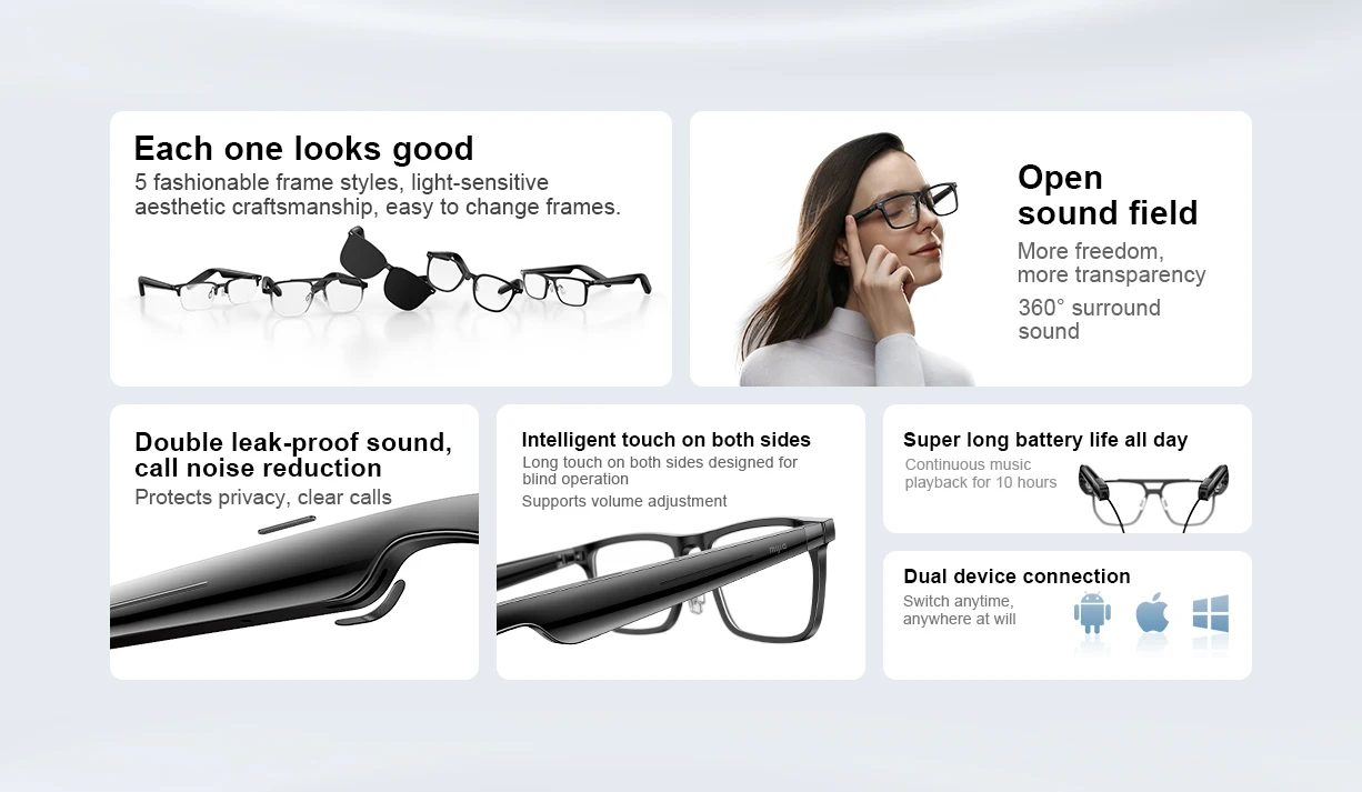 WUPRO X Xiaomi Mijia Smart Glasses Lightweight 360 Degree Music Surround Smart Eyewear Long Battery Life xiaomi ar glasses