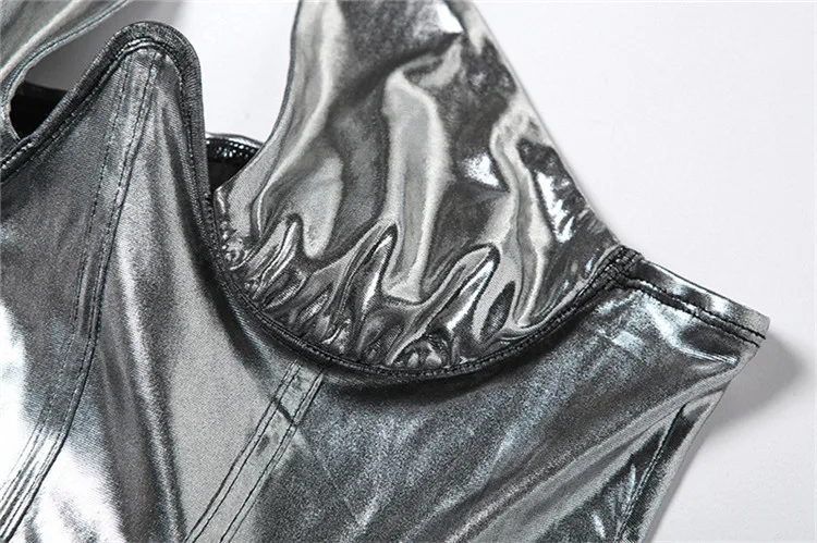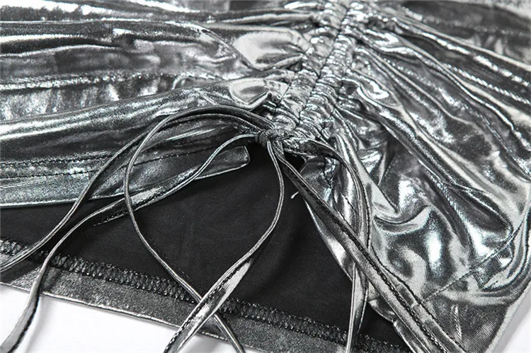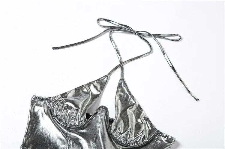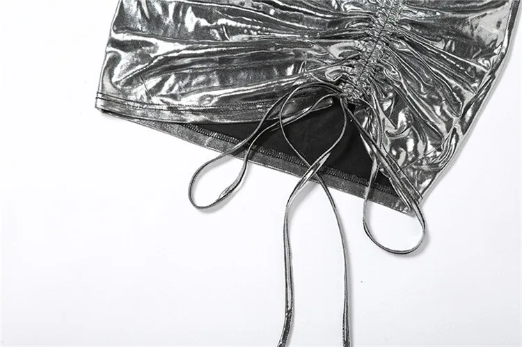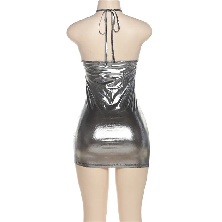 xs Women Clothing Summer Sexy Cleavage Shiny Halter Mini Dress Women Party Club Drawstring Bandage Sleeveless Skinny Dresses