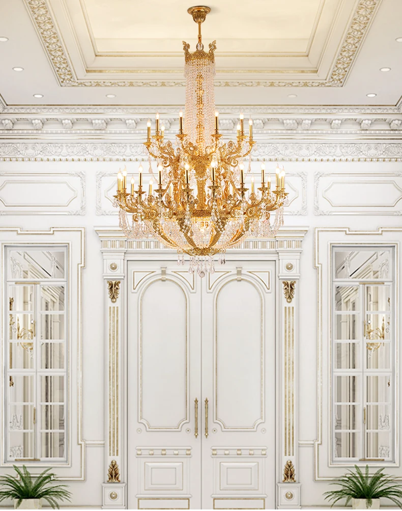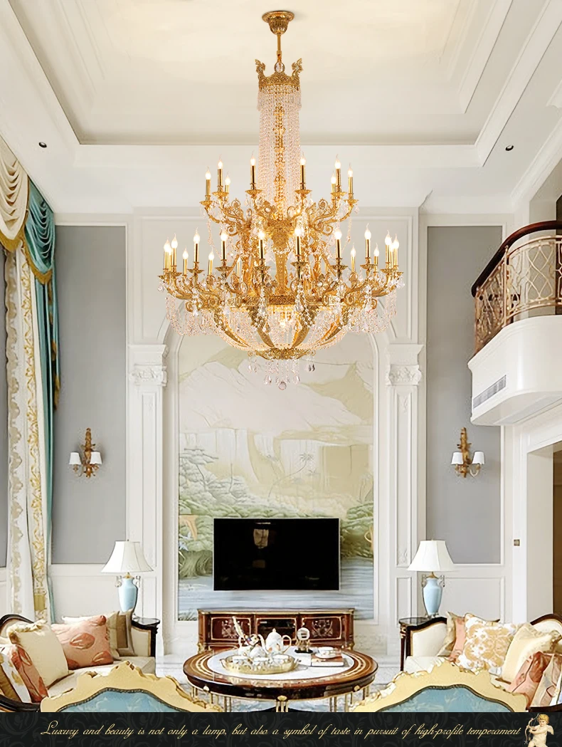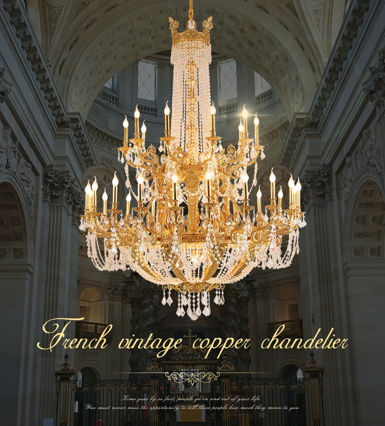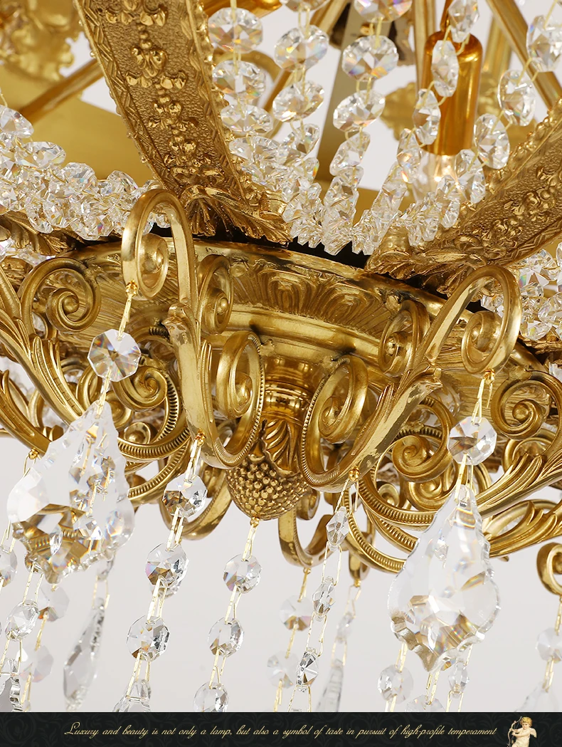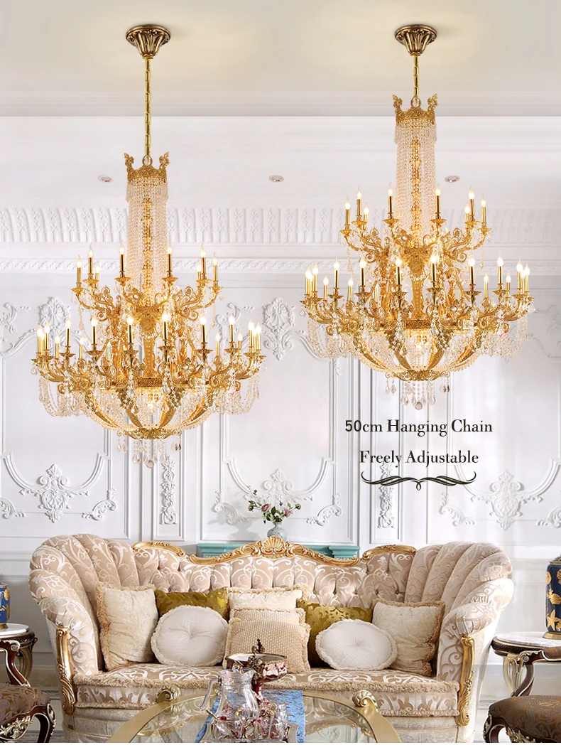 XUANZHAO Crystal Pendant Lamp Brass Light Hanging for Church Boho Huge Chandelier Large Chandeliers for High Ceilings