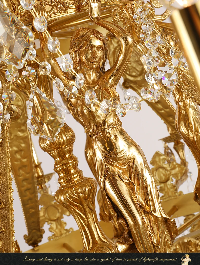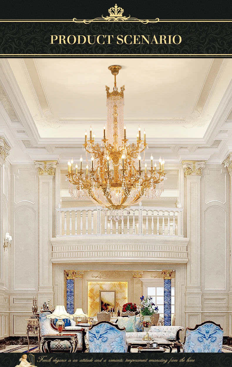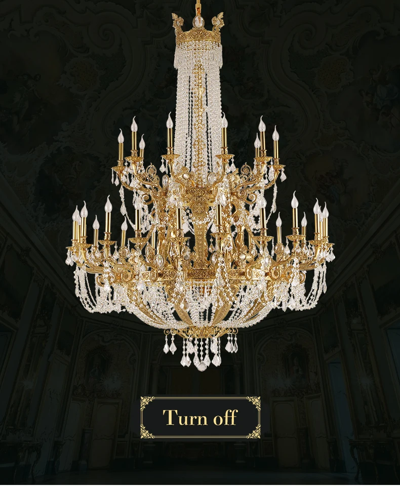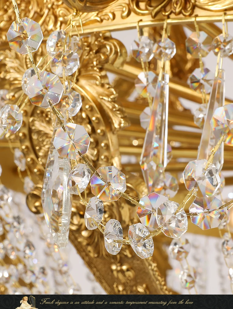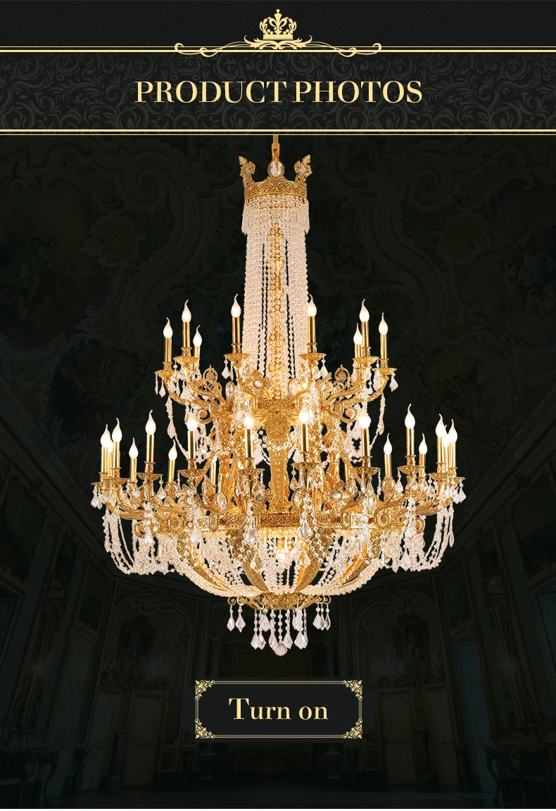 XUANZHAO Crystal Pendant Lamp Brass Light Hanging for Church Boho Huge Chandelier Large Chandeliers for High Ceilings