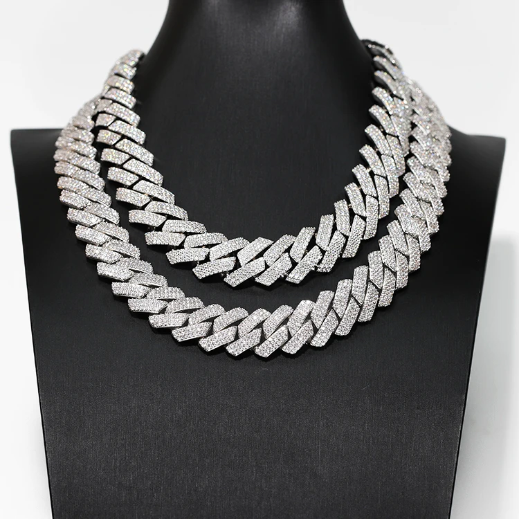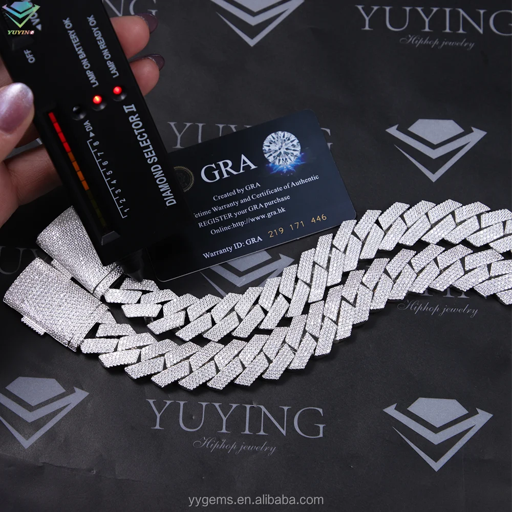 Yu Ying RTS heavy weight 20mm wide 4rows moissanite cuban chain men necklace S925 silver cuban link chains jewelry
